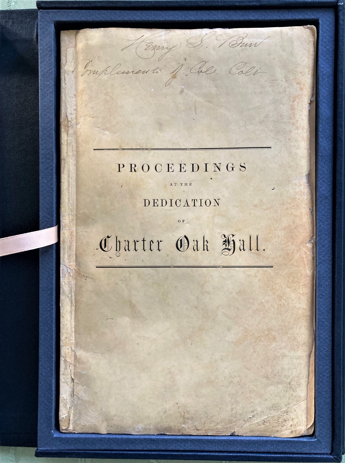 Signed by S. COLT! 1856 DEDICATION of CHARTER OAK HALL UPON SOUTH MEADOW GROUNDS eBay