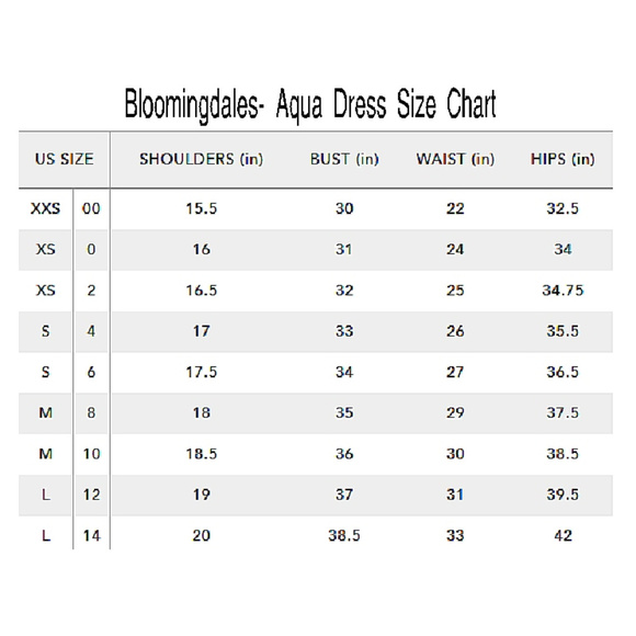Aqua Dress Size Chart
