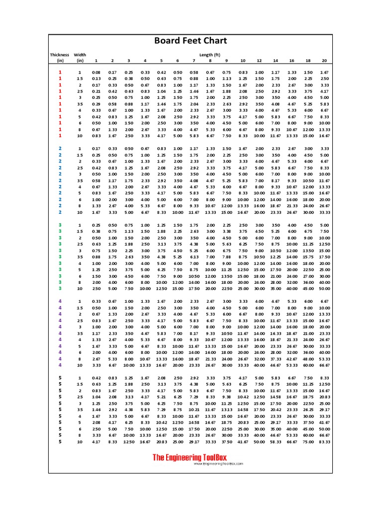 Printable Board Foot Chart