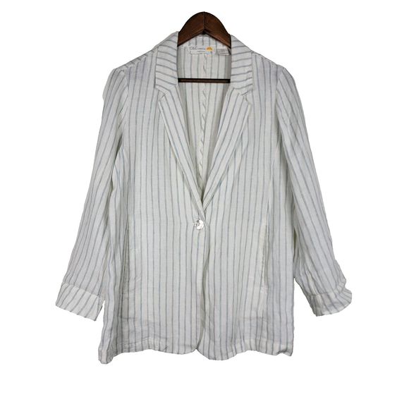 C&C California Jackets & Coats Cc California Womens Medium 0 Linen Roll Tab Striped Blazer