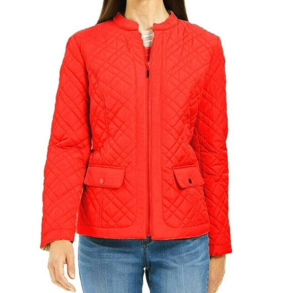 Charter Club Jackets & Coats Charter Club Womens Quilted Mandarincollar Jacket L Red Polish