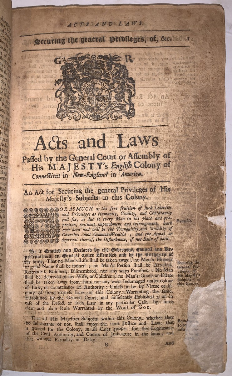 Lot CHARTER GRANTED TO THE GOVERNOR OF CONNECTICUT "The Charter Granted by His Majesty King