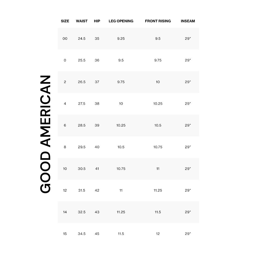 Good American Size Chart Shop