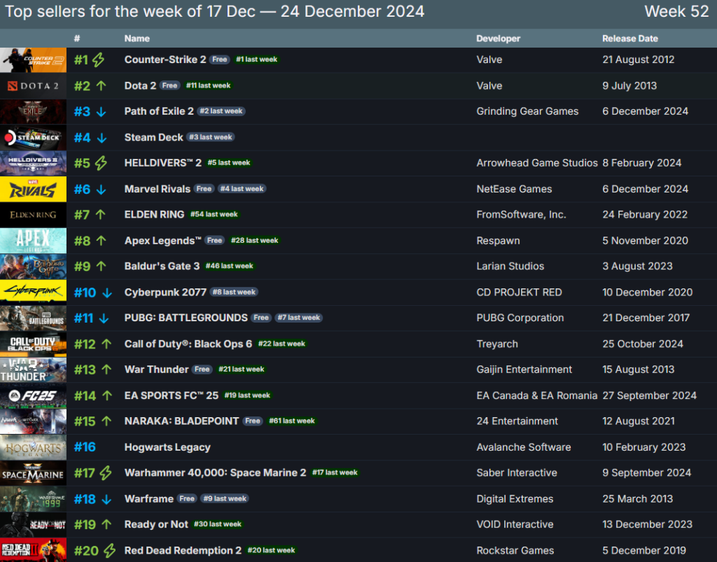 Path of Exile 2 continues to dominate Steam charts among premium games, indie hit MiSide breaks