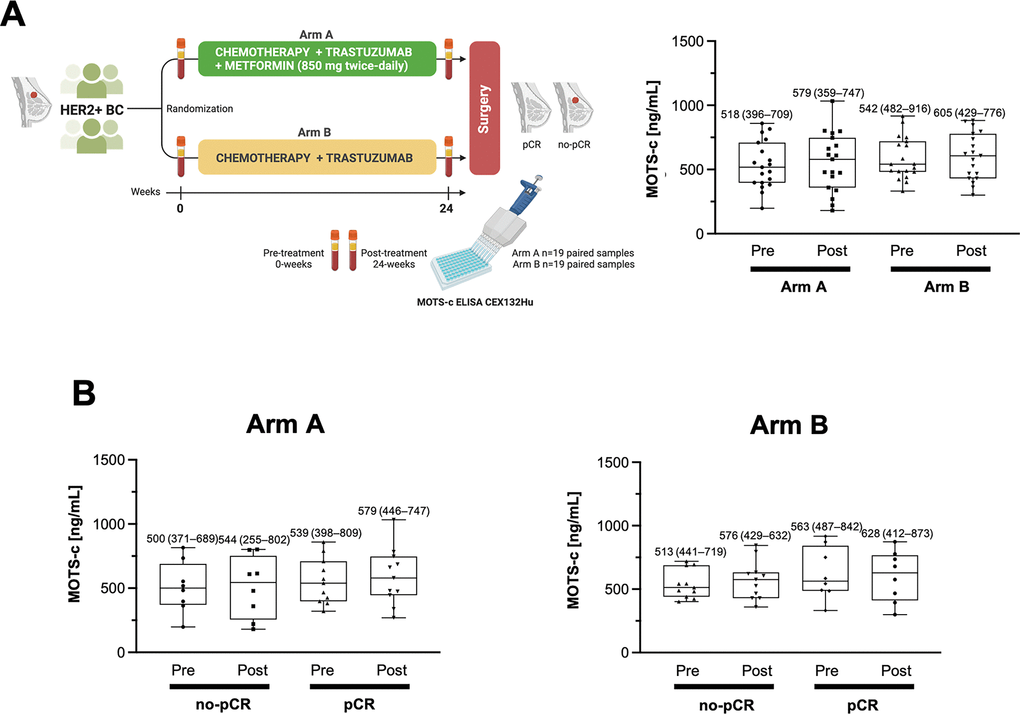 Circulating levels of MOTSc in patients with breast cancer treated with metformin Aging