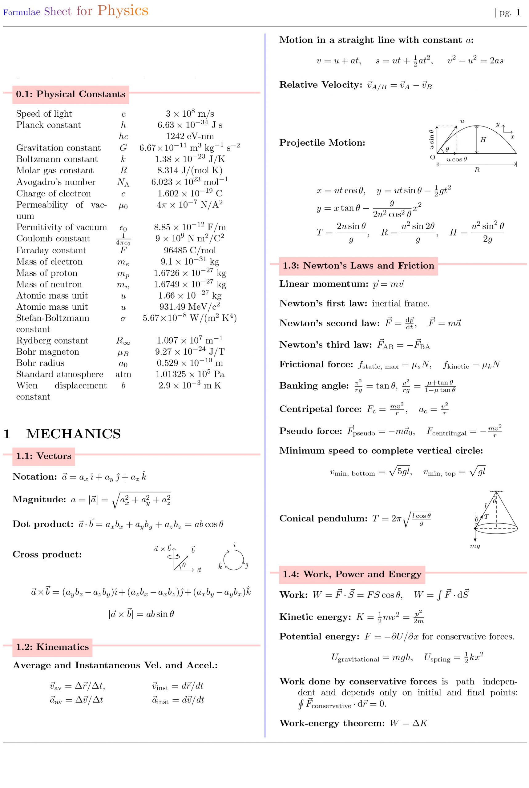Physics Formula Sheet.pdf Natural Philosophy Theoretical Physics