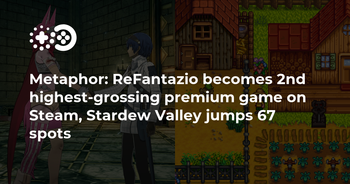 Metaphor ReFantazio 2nd highestgrossing premium game on Steam, Stardew Valley jumps 67