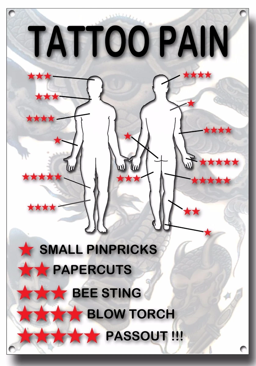 Tattoo Pain Chart For MaleFemale Unique Body Parts With Indicators